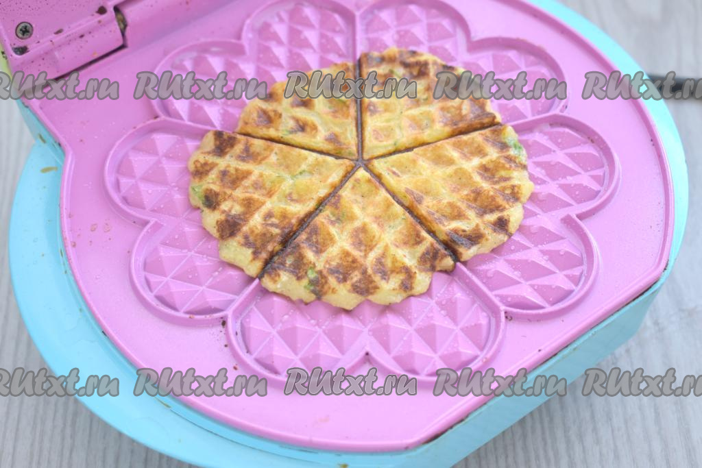 Накрываем верхней панелью и готовим картофельную вафлю 3-4 минуты (до подрумянивания). Периодически перемешивая тесто и смазывая панели вафельницы только по мере необходимости, постепенно выпекаем все постные вафли (я испекла 7 вафель).