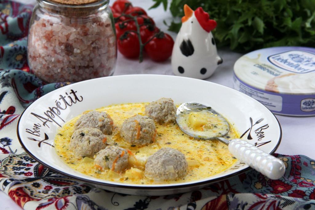 Предлагаю приготовить на обед очень вкусный, нежный сливочно-сырный суп с фрикадельками. Для этого первого блюда не нужно специально варить бульон, поэтому такой суп готовится буквально минут за 40, при условии, что у вас уже есть мясной фарш. Суп, сваренный с фрикадельками, плавленным сыром и сливками, получается очень сытным, нежным, с приятным бархатистым вкусом. Это блюдо всегда вносит приятное разнообразие в семейное меню!