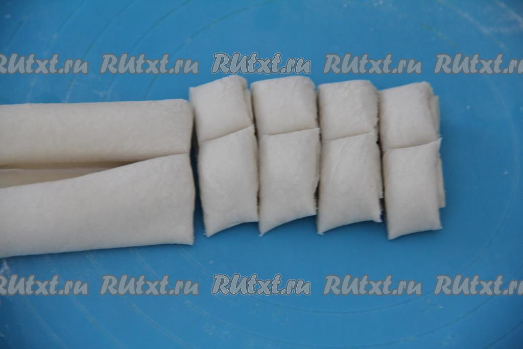 Нарезать острым ножом получившуюся заготовку на кусочки толщиной 1-1,5 сантиметра.