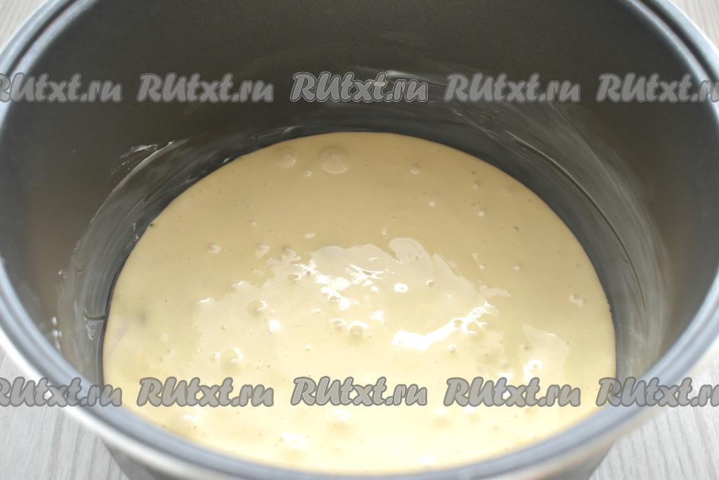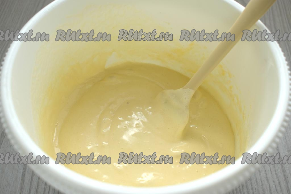Частями добавляя оставшуюся просеянную муку, замешиваем нежное, воздушное, однородное тесто. Как только консистенция теста станет напоминать сметану средней жирности, значит больше муку добавлять не нужно.