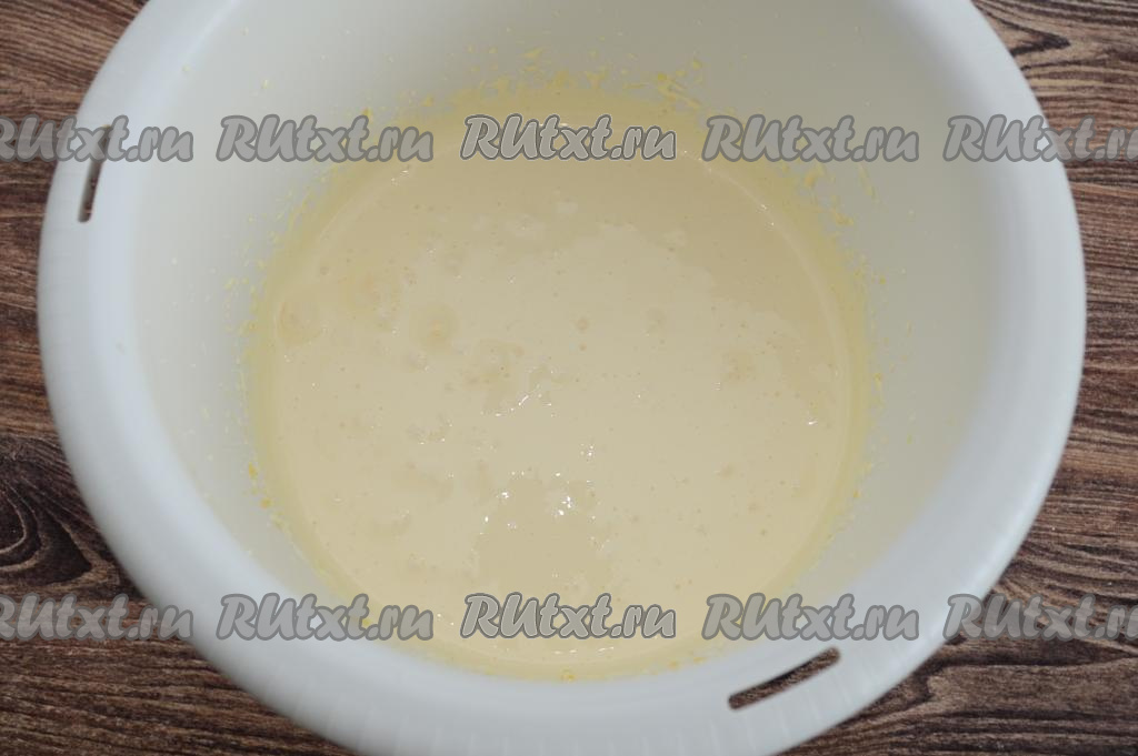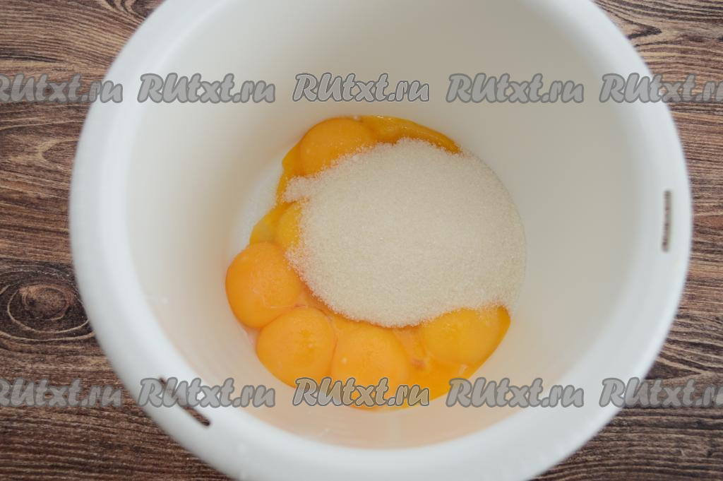 Взбить желтки с сахаром и солью на максимальных оборотах миксера в течение 5-7 минут (до побеления массы и растворения сахара).