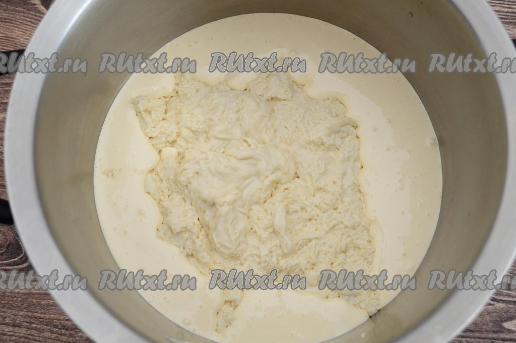 Сливки должны быть тёплыми, но не горячими (если сливки слегка перегрелись, тогда дайте им немного остыть). Если сливки будут горячими, дрожжи в дальнейшем в них погибнут.