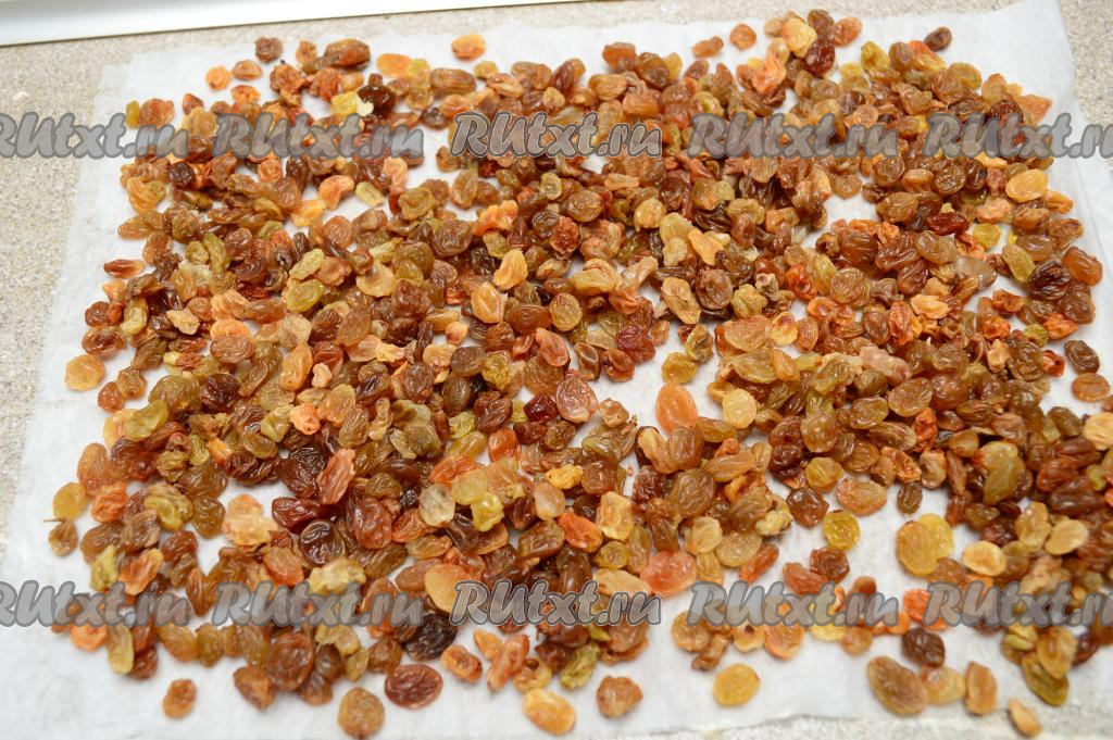 Осмотрите изюм, если есть веточки или подпорченные изюминки, тогда уберите их.
