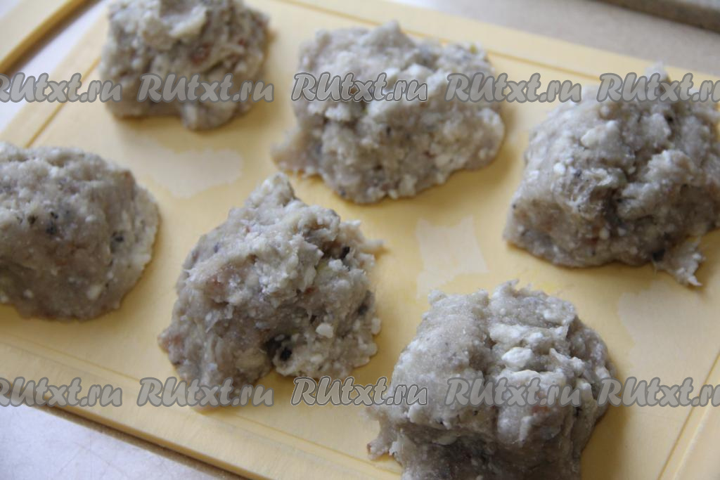 Разделить фарш на равные части. Я разделила на 9 частей.