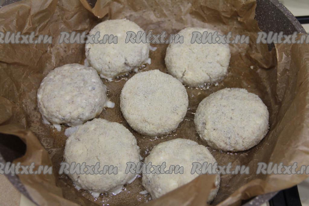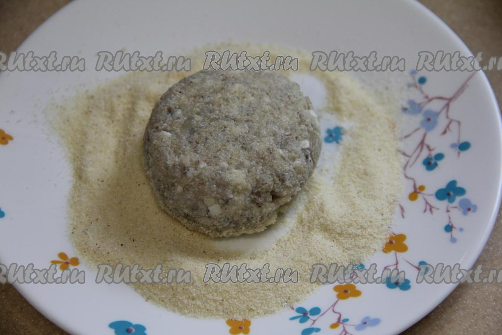 Благодаря обваливанию в манке, на поверхности рыбных котлет в процессе обжаривания образуется хрустящая корочка. Но при желании котлеты можно обвалять не в манке, а в панировочных сухарях или в муке.