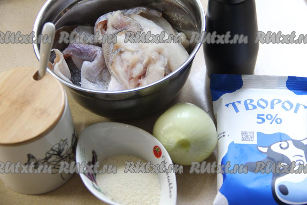 Подготовить продукты. Филе минтая можно купить в магазине, а можно взять целые тушки минтая, разморозить их и отделить филе от костей, удаляя плавники, кожу и внутренности. Лук почистить. Творог можно взять любой жирности (я купила жирностью 5%).