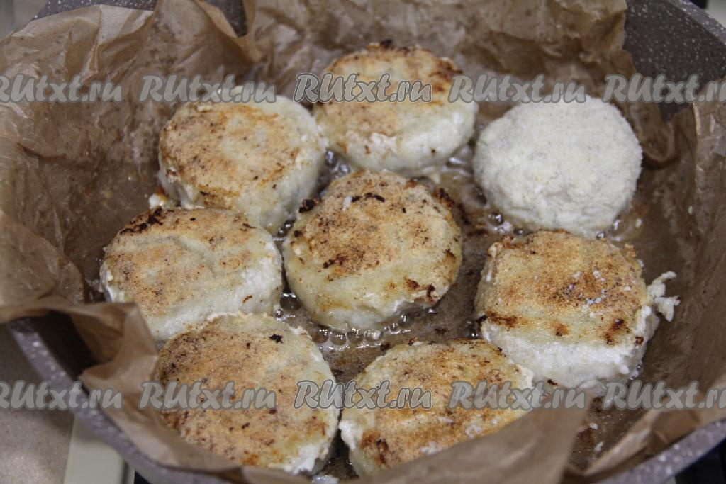 Жарить котлеты из минтая с творогом на среднем огне с двух сторон до золотистого цвета (я жарила по 7 минут с каждой стороны).