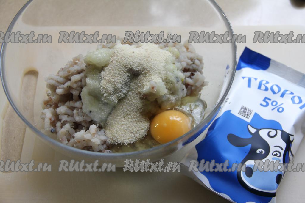 К рыбному фаршу добавить творог, хорошо вымесить фарш. Оставить фарш для котлет из минтая и творога на кухонном столе на 15 минут (для набухания манки).