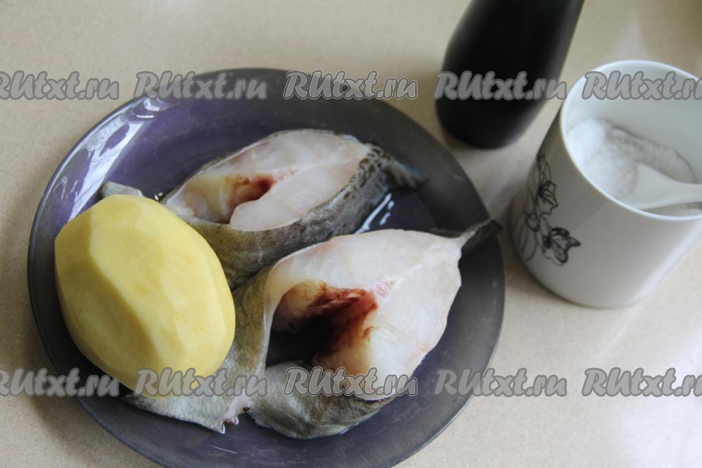 Подготовить продукты. Стейки зубатки промыть и обсушить. Картошку почистить.