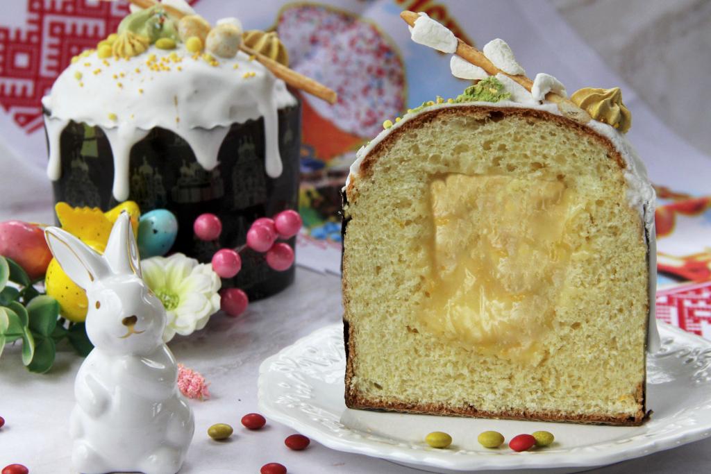 А вот как вкусный, ароматный пасхальный кулич с начинкой из лимонного курда выглядит в разрезе. Угощайтесь!