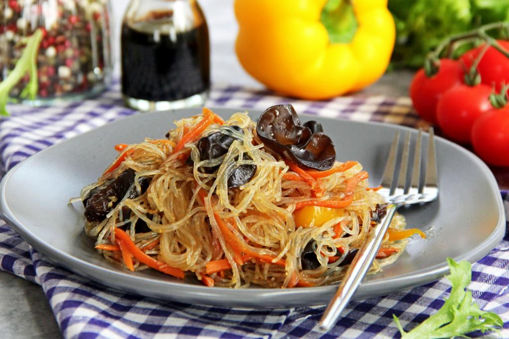 Сушёные древесные грибы муэр можно приобрести практически в любом интернет-магазине. С этими грибочками можно приготовить немало вкусных и сытных блюд. В этот раз решила приготовить фунчозу с грибами муэр и овощами. Блюдо получилось вкусным, пикантным, аппетитным, сытным. Приятно похрустывающие грибочки отлично сочетаются с фунчозой, а овощи прекрасно дополняют вкус. Это горячее блюдо можно подать и на обед, и на ужин. Готовится несложно. Это пикантное блюдо нравится всей нашей семье, поэтому и вам советую попробовать!