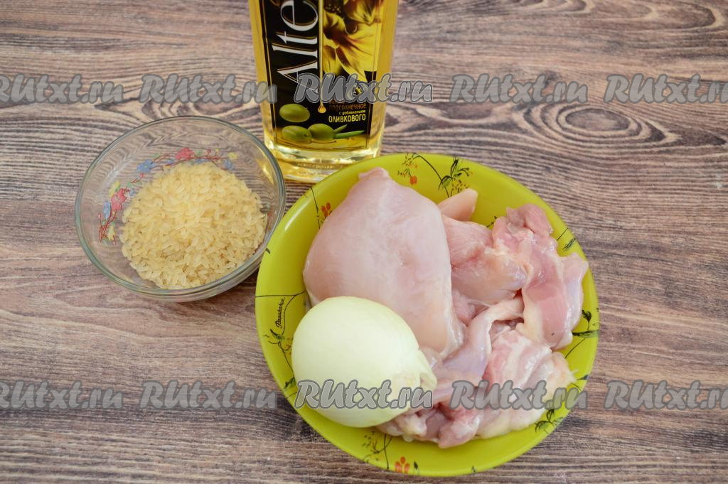 Подготовить продукты. Лук очистить. Мясо можно взять любое (свинину, говядину, индейку или курицу). В этот раз у меня куриное мясо (я взяла филе бедра и филе грудки). Промыть мясо водой.