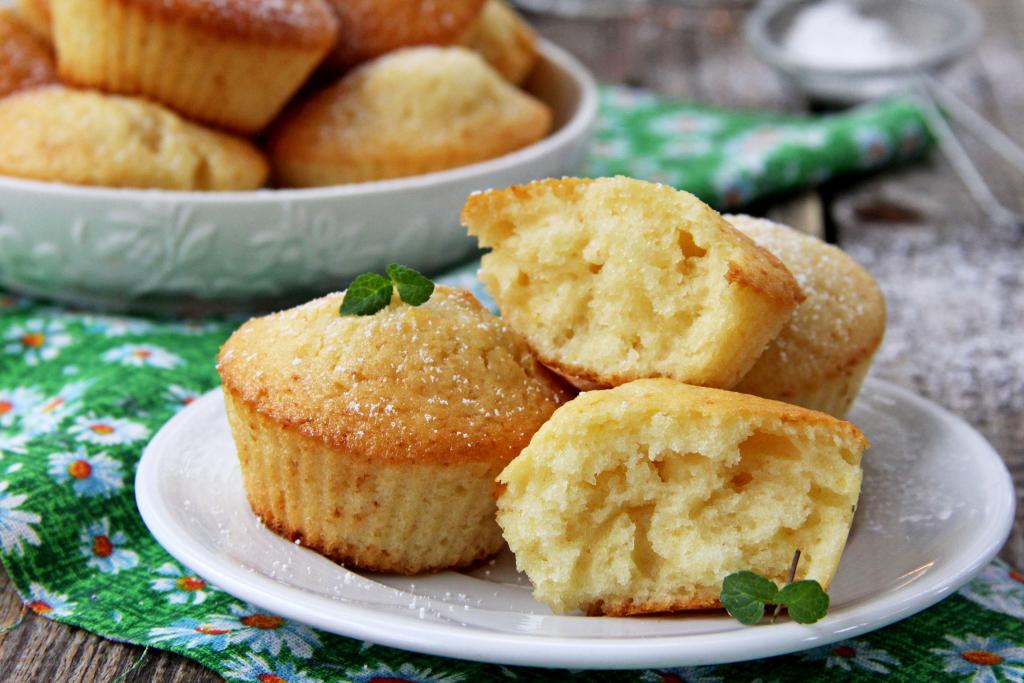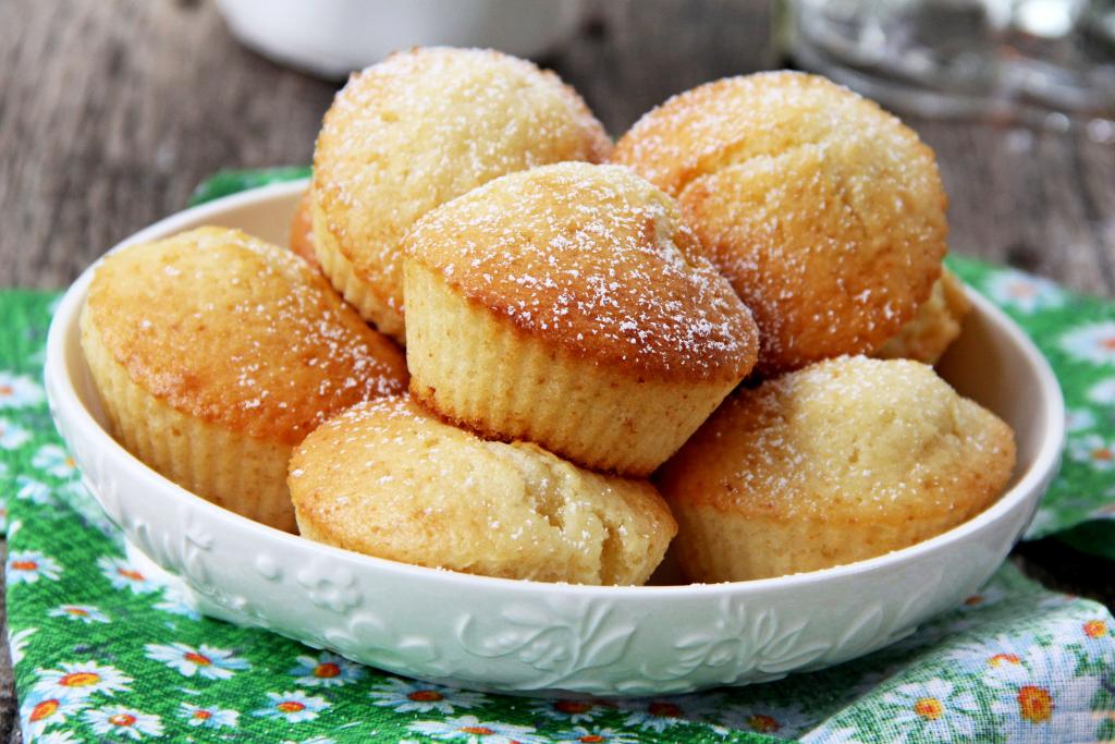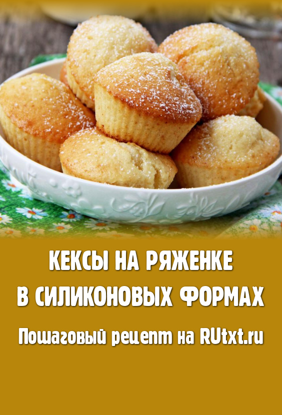 Достать готовые кексы из духовки, остудить 3-4 минуты и вынуть их из силиконовых форм. Переложить на тарелку, оставить остывать. А затем вкусную, ароматную, в меру влажную выпечку, приготовленную на ряженке, по желанию, можно присыпать сверху сахарной пудрой. Подать кексы к столу.