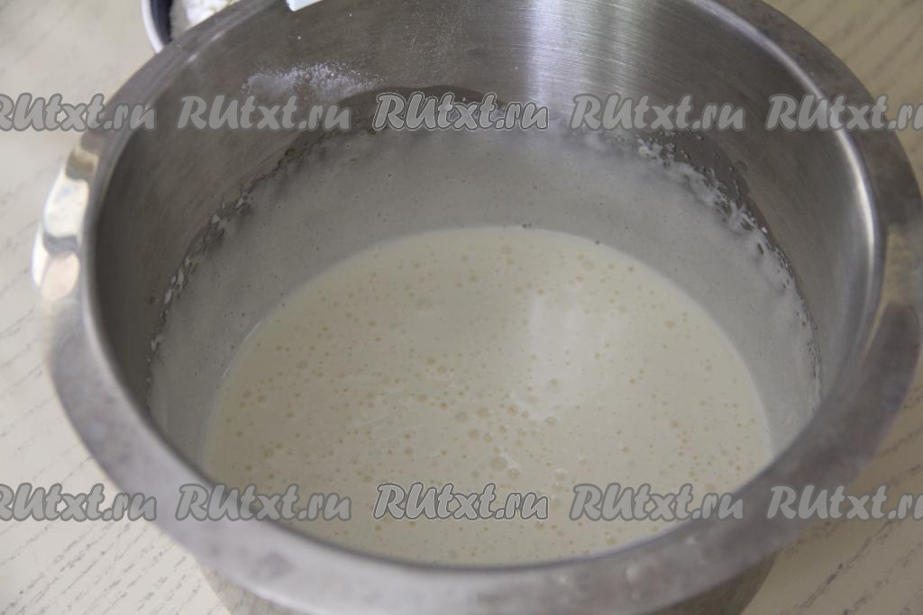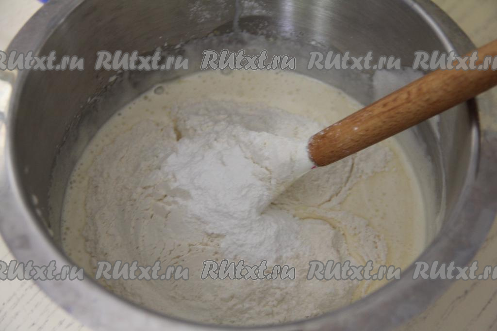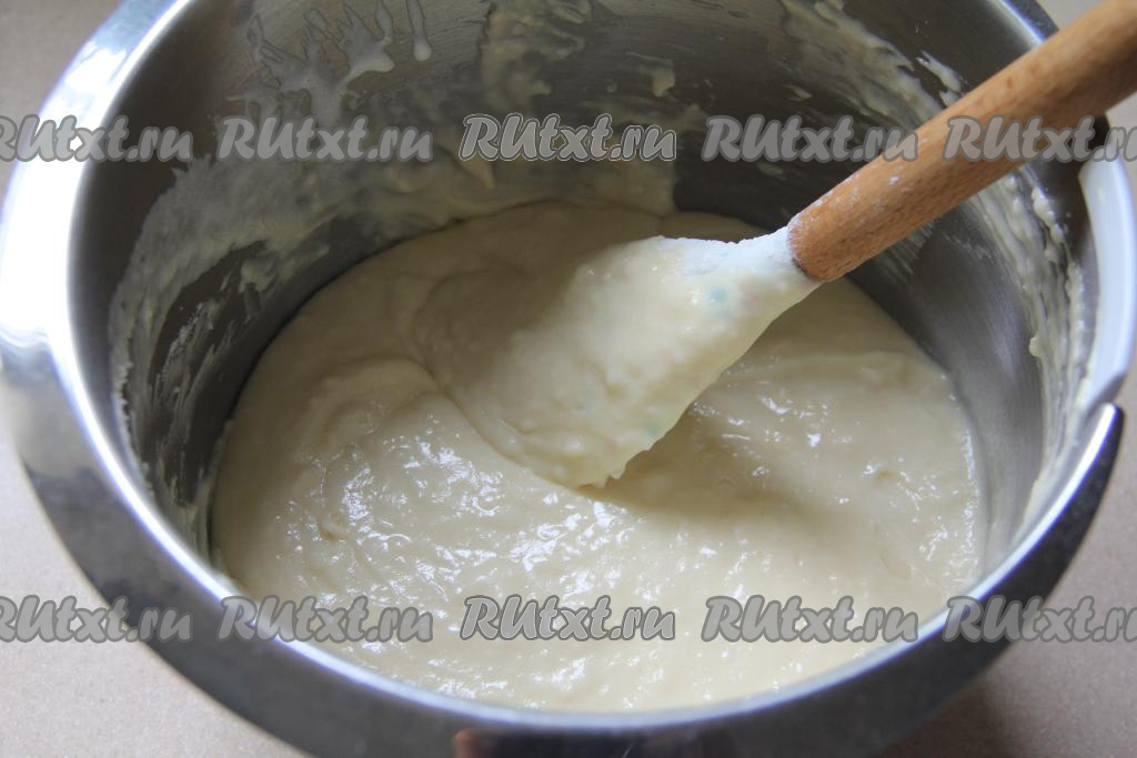 Постепенно подсыпая оставшуюся муку и очень хорошо вмешивая её, замесить однородное тесто, напоминающее по консистенции сметану средней густоты.