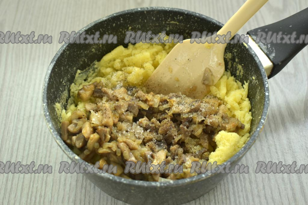 Перемешиваем картофельное пюре с грибами, если нужно, досаливаем и начинка для пирожков готова.