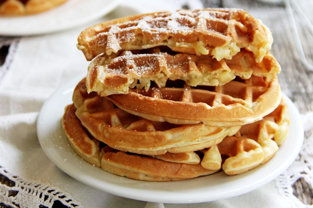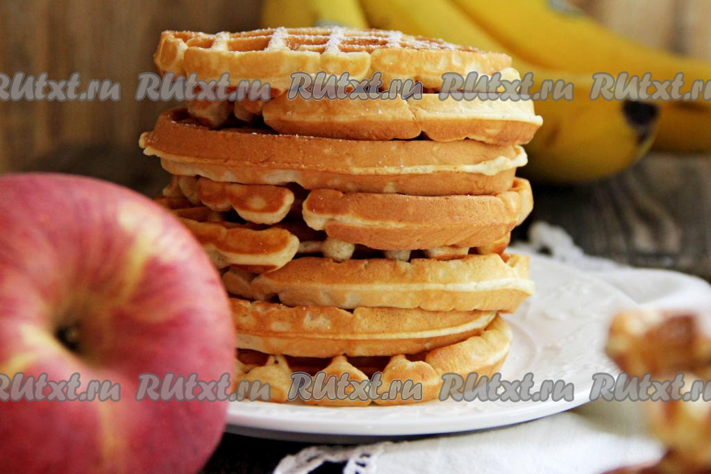 Мягкие, ароматные, нежные вафли, приготовленные с яблоком и бананом, можно подать и тёплыми, и остывшими.