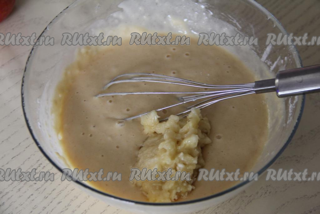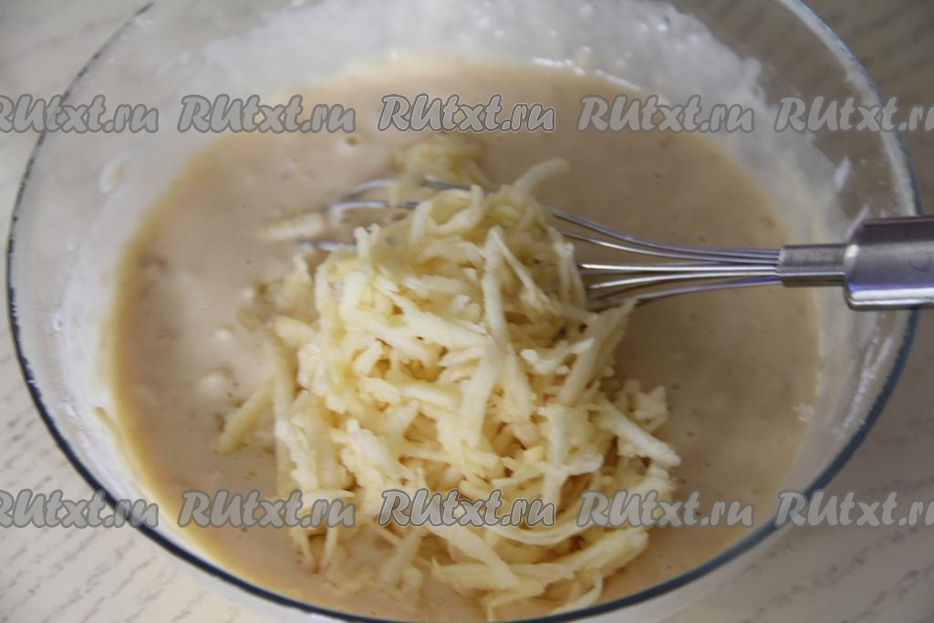 Яблоко помыть, очистить от кожуры, натереть на крупной тёрке. Чистый вес натёртого яблока у меня был 100 грамм. Добавить натёртое яблоко в тесто, перемешать.