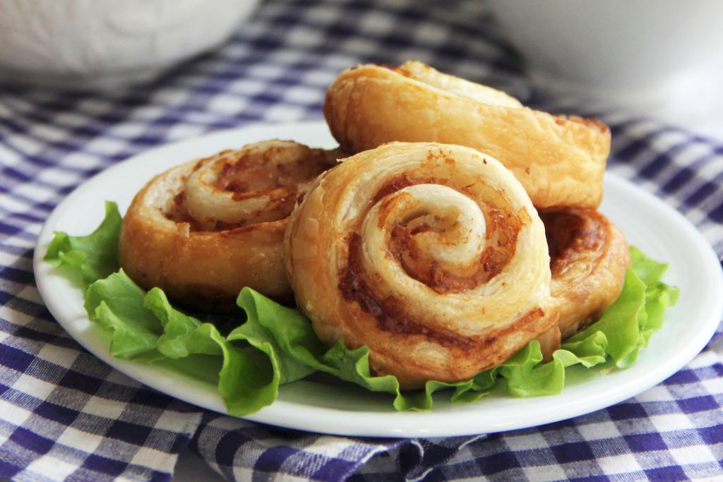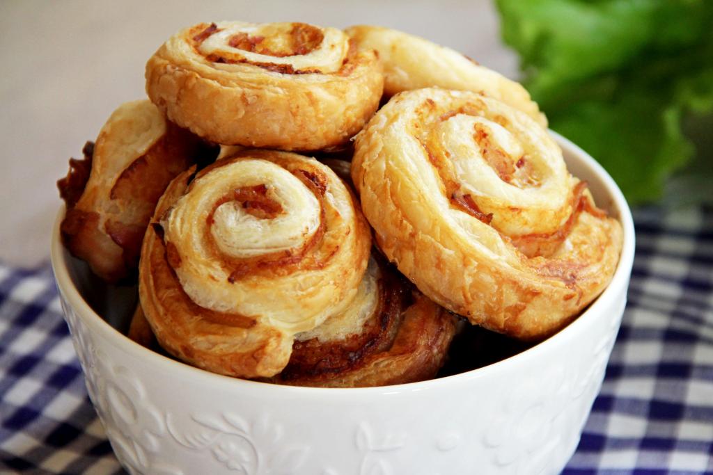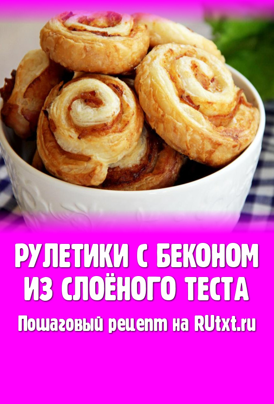 Эти вкусные, нежные, аппетитные рулетики можно подавать и тёплыми, и остывшими. Воздушное слоёное тесто очень удачно сочетается в этой выпечки с ароматным беконом.