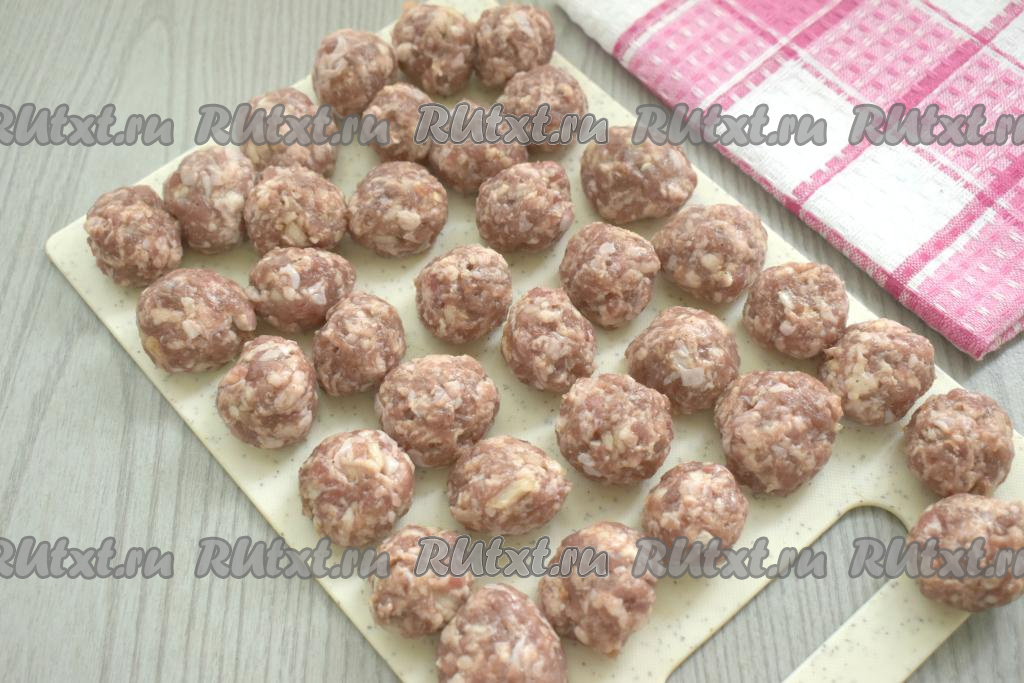 Из получившегося фарша формируем круглые фрикадельки размером чуть больше грецкого ореха.