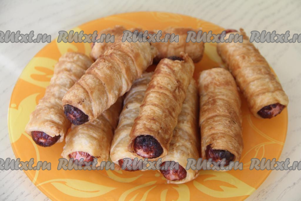 Слоёное тесто должно хорошо подрумяниться, приобрести золотистый оттенок. Готовые сосиски выложить на бумажные салфетки, чтобы удалить излишки масла.