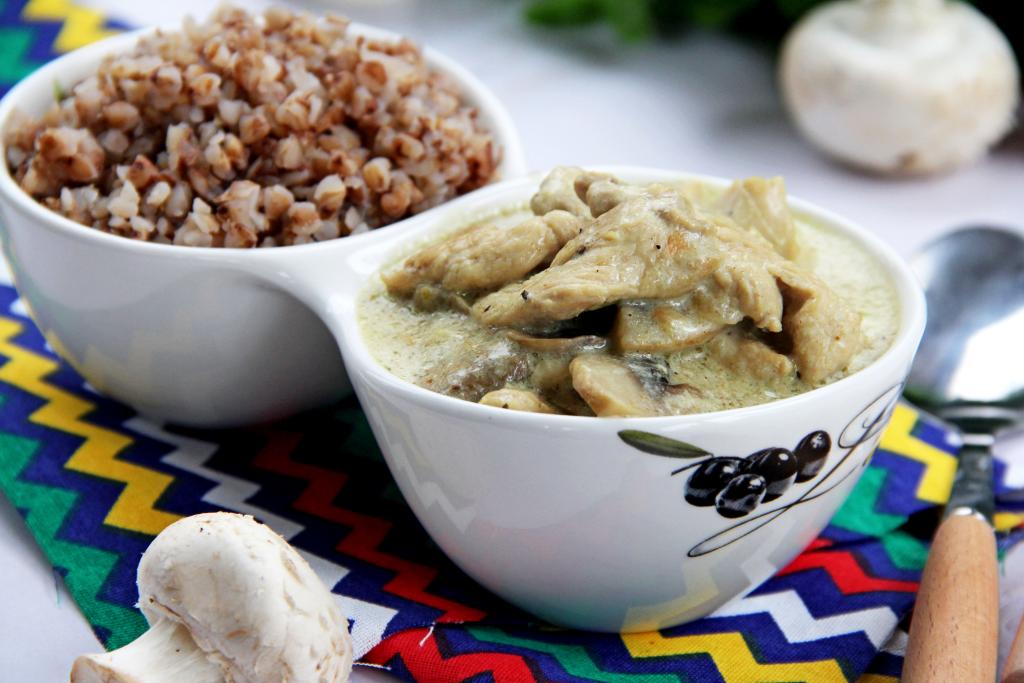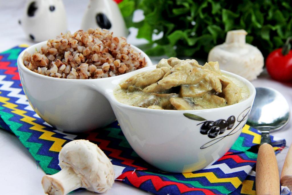 Я подала бефстроганов вместе с гарниром из гречки. Очень вкусно и сочно!
