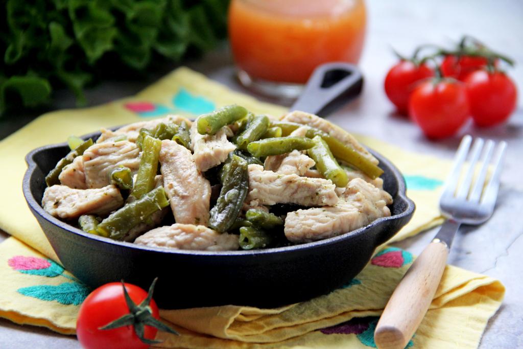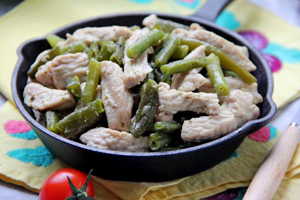 Стручковая фасоль отлично сочетается с различными видами мяса. Поэтому на обед или к ужину предлагаю приготовить на сковороде кусочки индейки со стручковой фасолью. Блюдо получается аппетитным, вкусным, достаточно сытным. Индейка в процессе тушения становится мягкой, фасоль - яркой, нежной. Стручковую фасоль можно взять как свежую, так и замороженную. При подаче это блюдо можно дополнить салатом из свежих овощей.