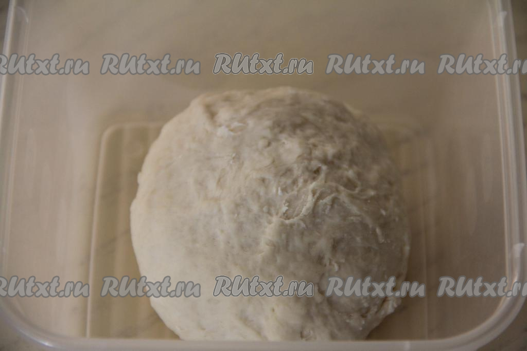 Добавляя понемногу муку и вмешивая её, учитывайте, что дрожжевое тесто для пиццы должно получиться мягким, нежным, почти не липнущим к рукам. Как только добились такой консистенции теста, значит больше добавлять муку не нужно. В общей сложности вымешивать тесто руками нужно не менее 5-7 минут. Сформировать из теста колобок, выложить в лоток (или миску), накрыть полотенцем и оставить в тёплом месте, без сквозняков, на 1 час, чтобы тесто поднялось.