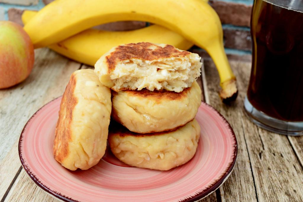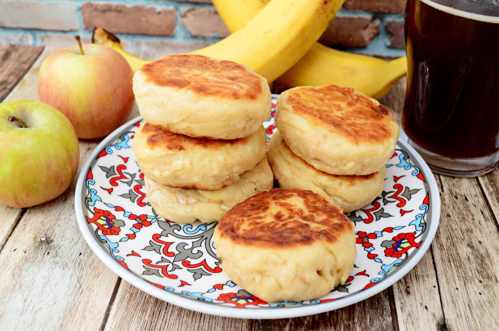 Если вы любите пышные, нежные сырники, тогда настоятельно советую обратить внимание именно на этот рецепт. Эти сырники готовятся из творога, банана и яблока без добавления яиц. Сырники получаются в меру сладкими, очень вкусными и аппетитными. Банан делает их более нежными, именно благодаря ему в тесто можно не добавлять яйцо. Яблоко придаёт сырникам приятную сочность. К столу их можно подать и на завтрак, и в качестве перекуса.