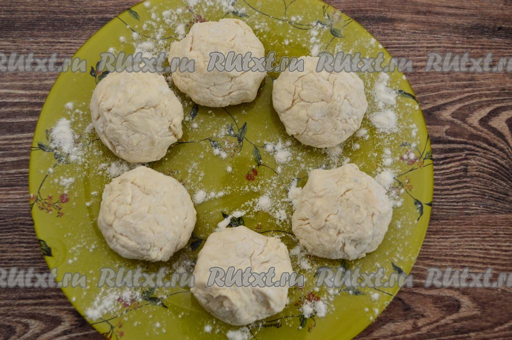 Получившееся творожное тесто с бананом и яблоками зрительно разделить на равные части (я разделила на 6 частей). Влажными руками вначале из одной части теста сформировать округлый сырник, обвалять его со всех сторон в муке.