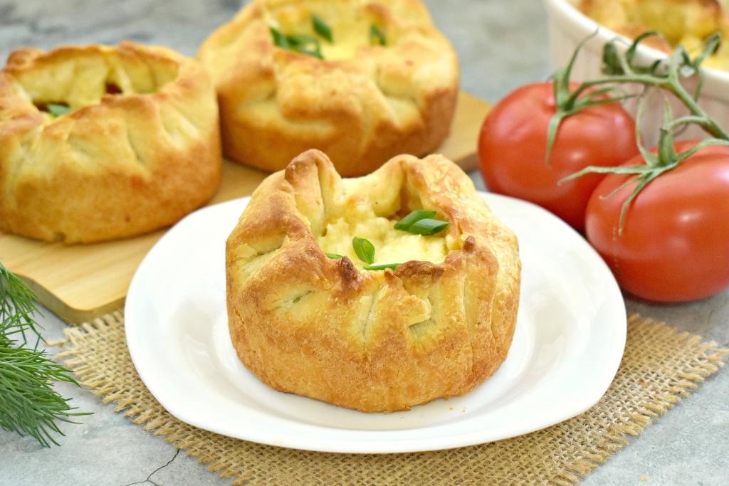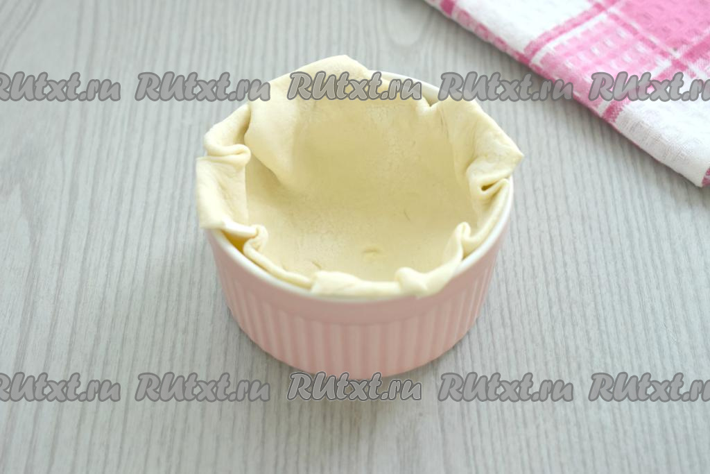 Края теста в каждой формочке опускаем на начинку, собирая аккуратно складочками.