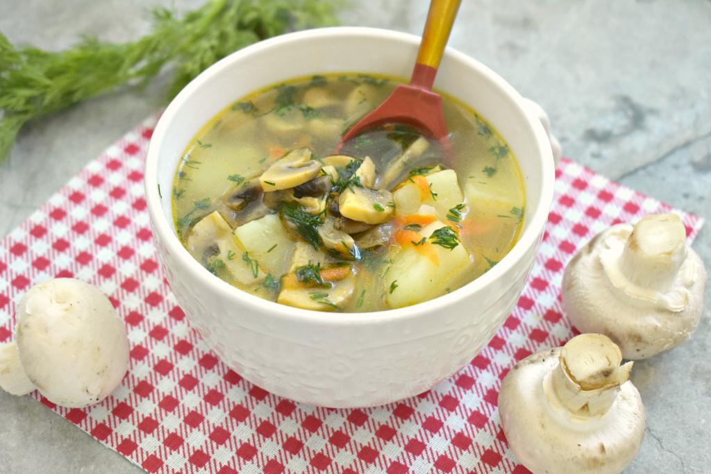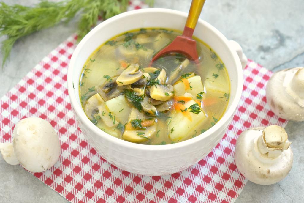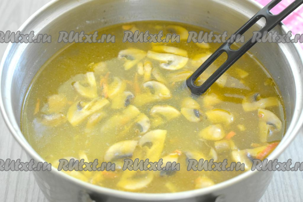 Суп с шампиньонами на курином бульоне