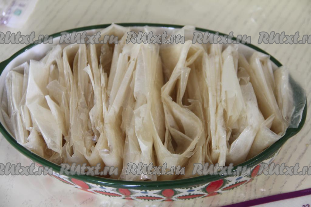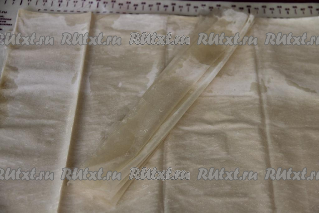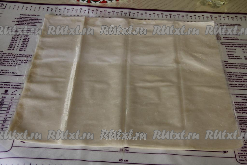При смазывании теста фило масла не жалейте, это тесто очень любит масло. Я смазывала тесто растительным маслом, можно использовать растопленное сливочное масло.