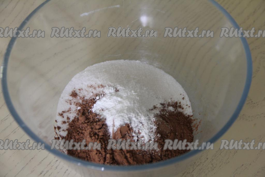 В миске соединить просеянную муку, какао, соду, сахар, соль и разрыхлитель.