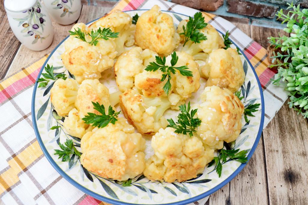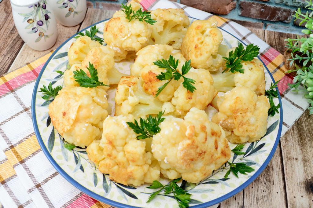 Готовую аппетитную, вкусную, нежную цветная капусту, жареную в яйце и муке, переложить со сковороды на тарелку и подать к столу в качестве основного блюда или гарнира к мясу.
