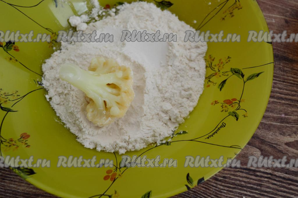 Затем обвалять соцветие капусты в муке.