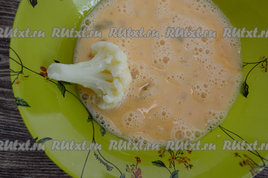 В яичный кляр, держа капусту за ножку, окунуть соцветие.