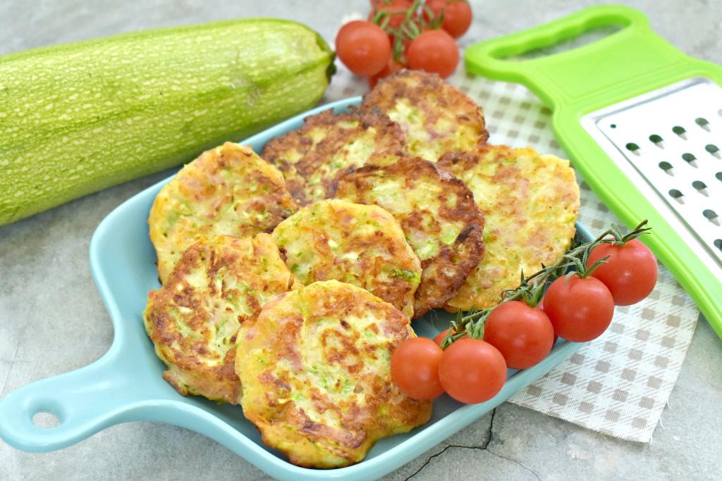 Разогреваем на сковороде растительное масло, выкладываем по 1-1,5 столовых ложки теста, формируя круглые оладьи. Жарим кабачковые оладьи до румяности с двух сторон (примерно по 3-3,5 минуты с каждой стороны).