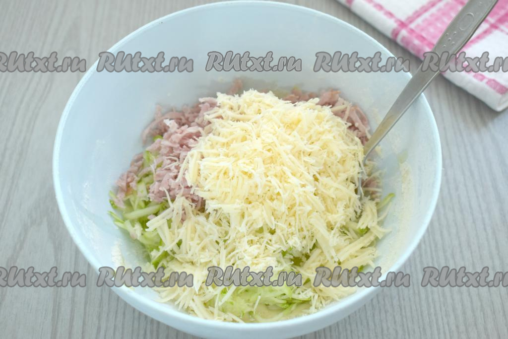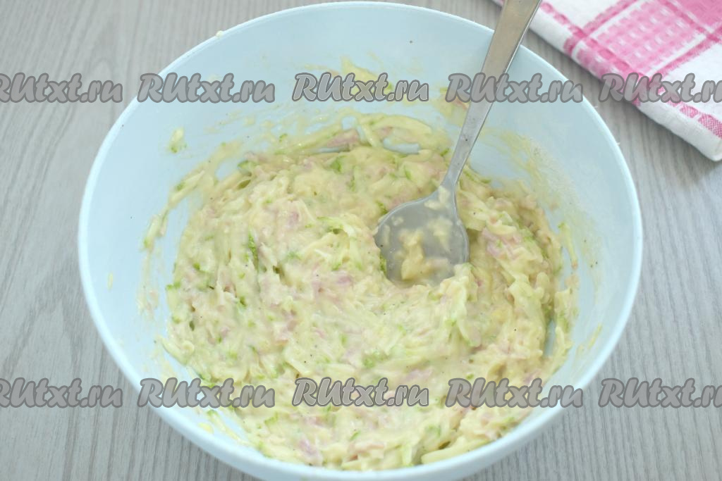 На этом этапе я добавила совсем немного соли, потому что в дальнейшем будет подсаливаться кабачок, да и сыр с ветчиной бывают достаточно солёными.