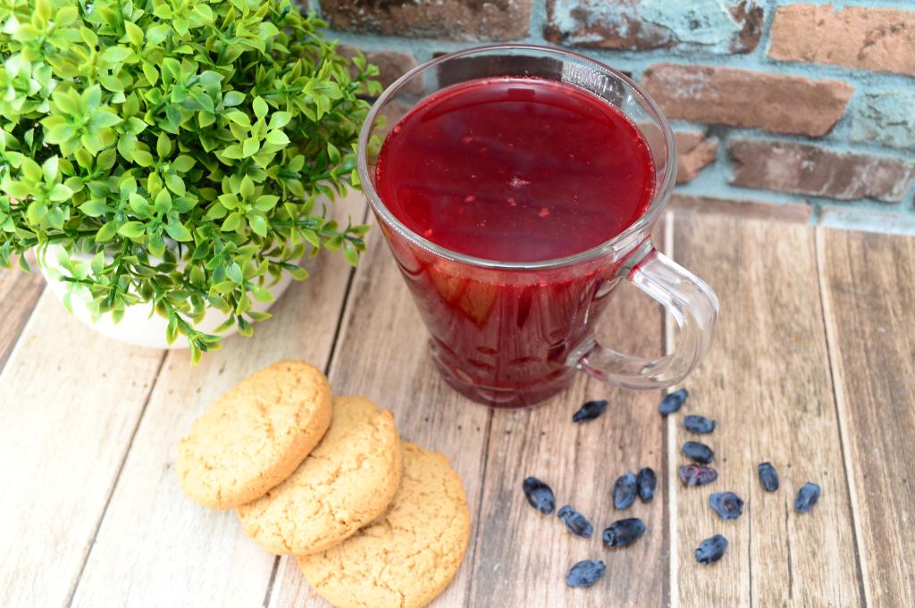 Остывший яркий, в меру густой, вкусный кисель из жимолости разлить по чашкам и можно наслаждаться вкусным, ароматным напитком!