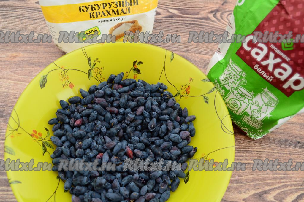 Подготовить продукты. Крахмал можно взять как кукурузный (его я и использовала), так и картофельный. Жимолость можно использовать как свежую, так и замороженную (размораживать не нужно).