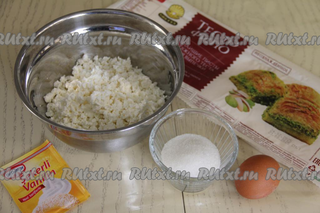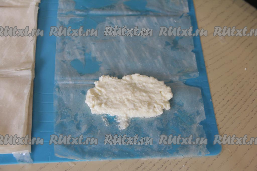 Подготовить продукты. Тесто фило я купила в вакуумной упаковке, оно продаётся не замороженным. Если вы купите замороженное тесто, тогда, не нарушая целостность упаковки, его нужно полностью разморозить при комнатной температуре. Творог можно взять любой жирности.