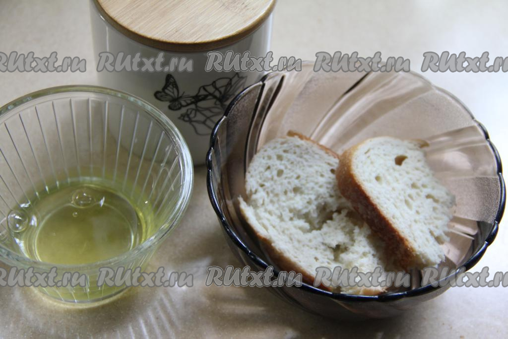 Хлеб замочить в молоке, затем отжать от лишней жидкости.