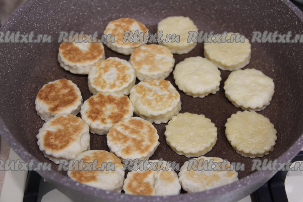 Жарить печенье с двух сторон до золотистого цвета на среднем огне.
