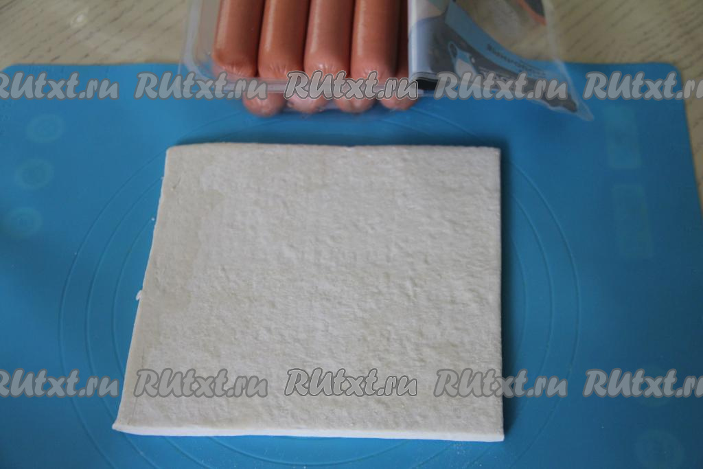 Подготовить продукты. Сосиски выбирайте качественные, от проверенного производителя. Слоёное тесто можно взять как дрожжевое, так и бездрожжевое.