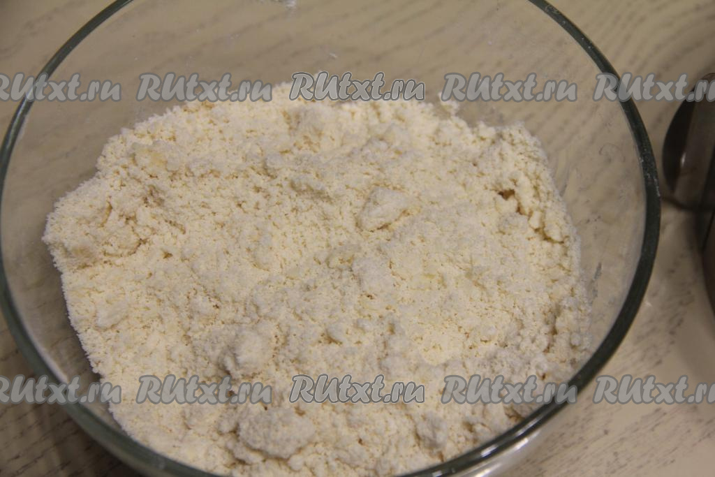 Содержимое миски перетереть руками в мелкую крошку.
