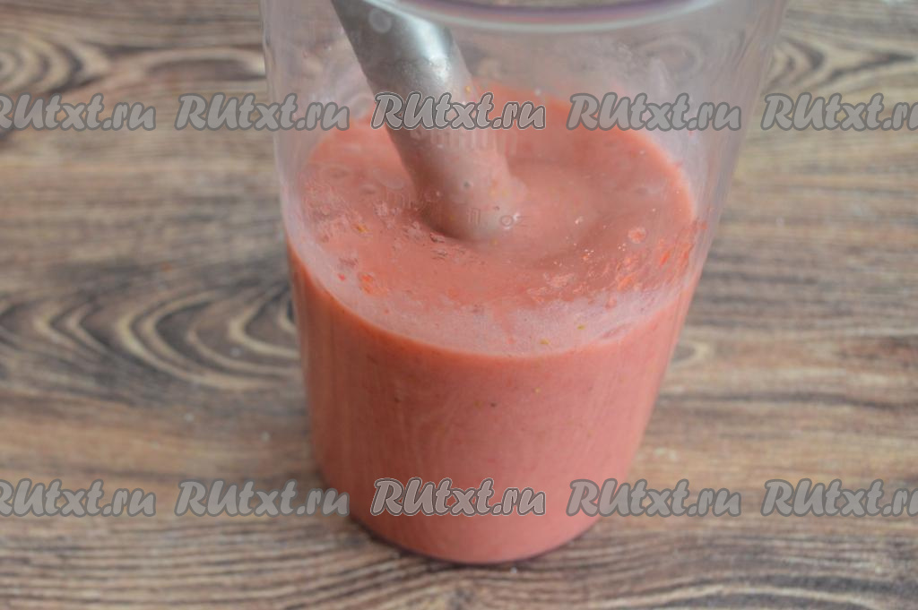 У меня был сладкий банан и в меру сладкая клубника, смузи вышел в меру сладким, поэтому ни сахар, ни мёд в него я добавлять не стала.