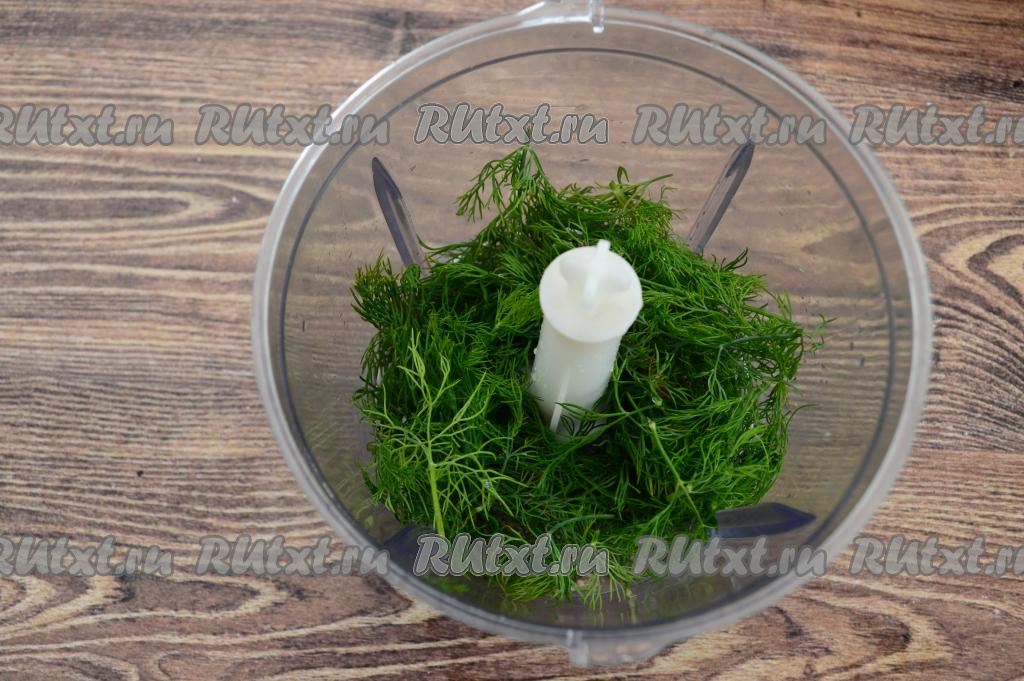 Обсохший укроп выложить в чашу измельчителя.