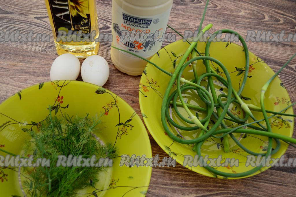 Подготовить продукты. Чесночные стрелки лучше собирать молодыми, они не имеют волокнистой части, легко гнутся. Укроп и стрелки промыть водой, немного обсушить. Молоко можно взять любой жирности (в этот раз я купила жирностью 3,2%).