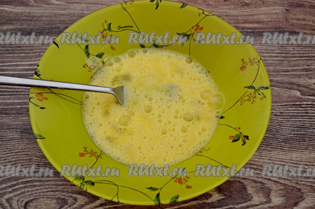 Вилкой взбить яйца до однородности.
