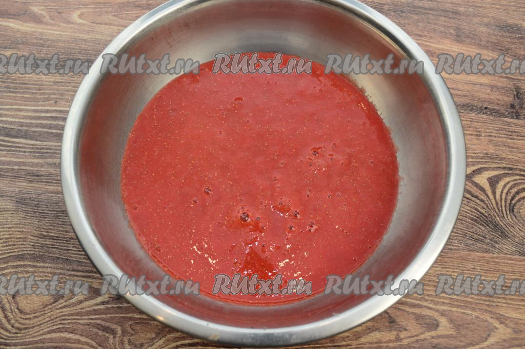 Перелить пюрированные ягоды в глубокую миску.